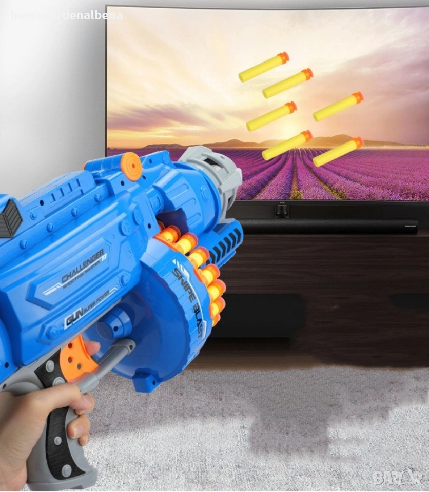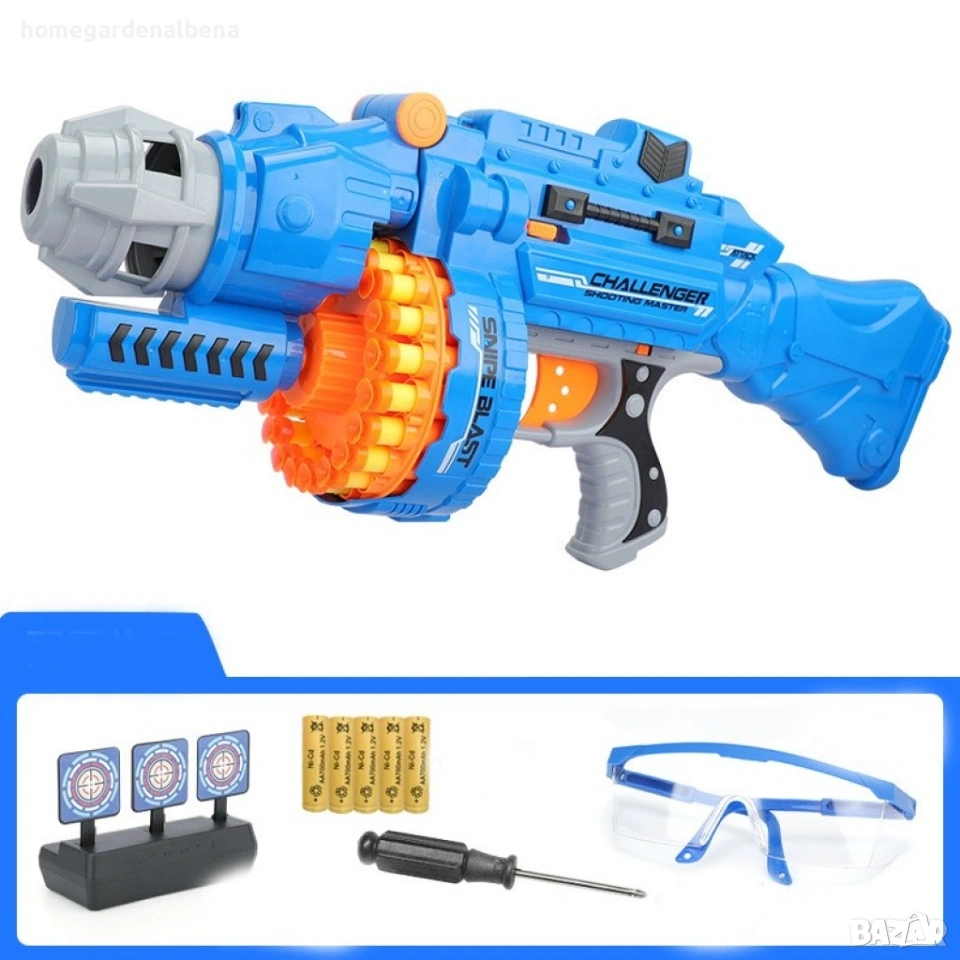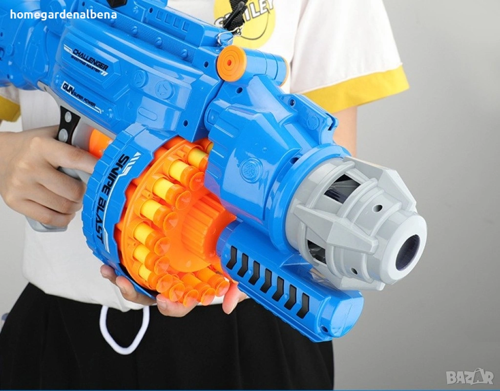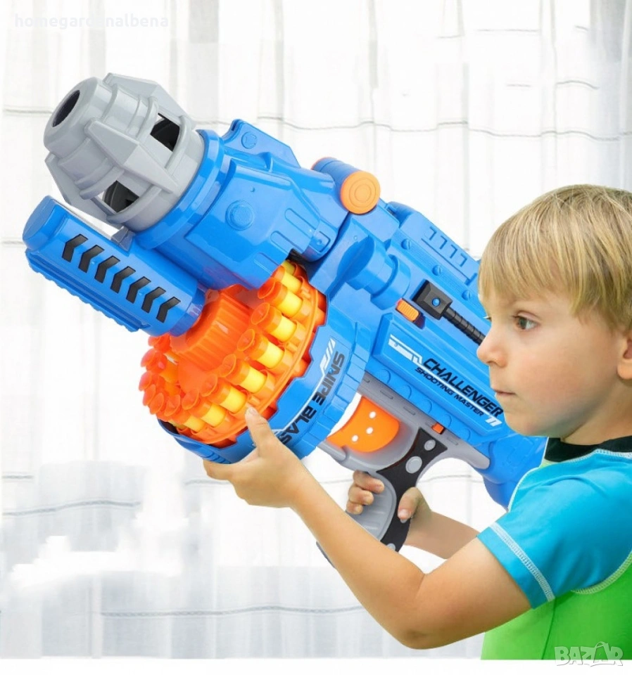 Home & Garden by Albena представя голям детски пистолет с меки куршуми – пълен комплект за незабавно забавление. В комплекта са включени 20 меки патрона и 1 мишена – всичко необходимо за активна стрелкова игра у дома или на открито.
