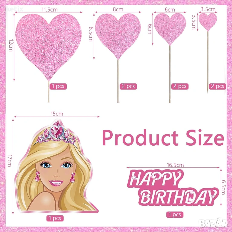 Комплект за декорация на торта включва 2 големи топпера за торта и 7 малки топера за торта. Тези декорации са сладки и са идеалният аксесоар за рожден ден.