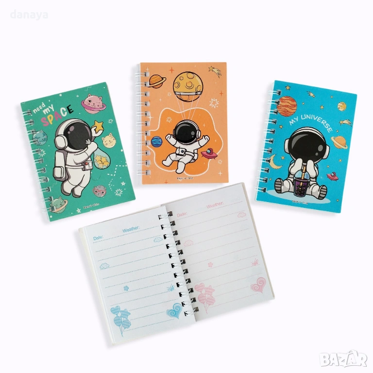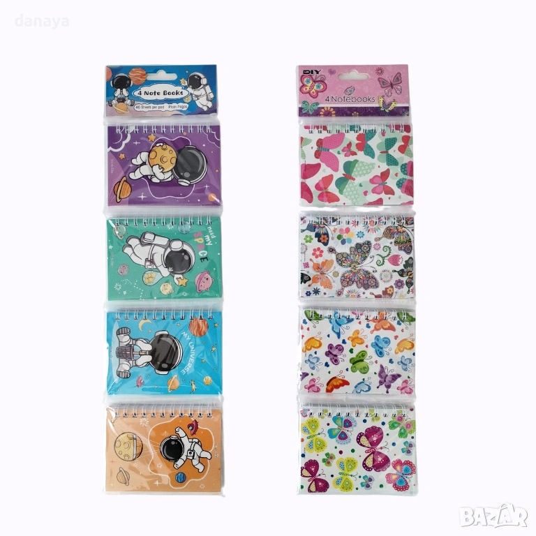Този комплект от 4 броя мини тефтерчета е създаден да вдъхновява – с весели дизайни като космос, астронавти и пеперуди, които превръщат всяка бележка в приключение. Компактният размер ги прави идеални за училище, раница или джоб, а спиралното захващане осигурява лесно разлистване и удобство при писане навсякъде.