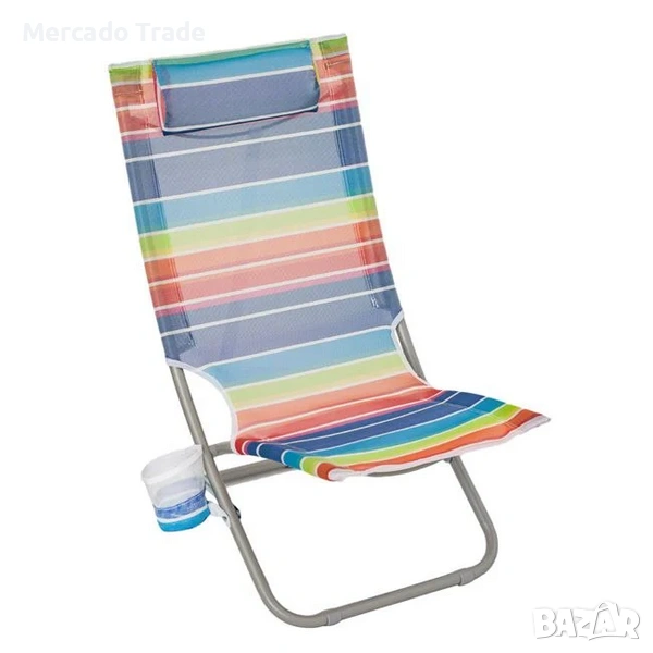 Стол Mercado Trade, Цветен на райета, С възглавница, Сгъваем за къмпинг или плаж.