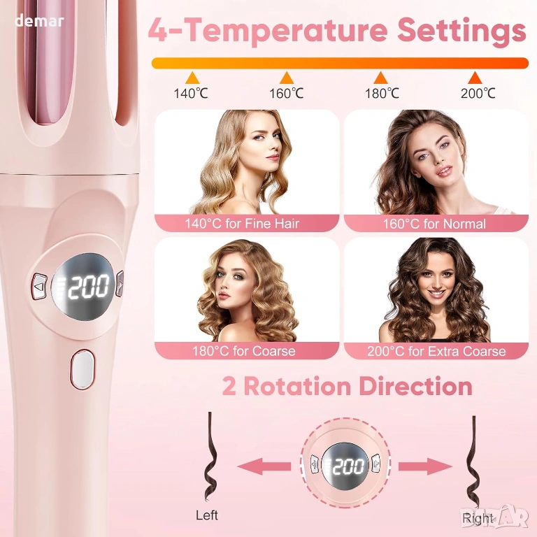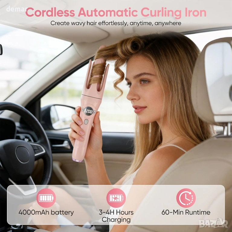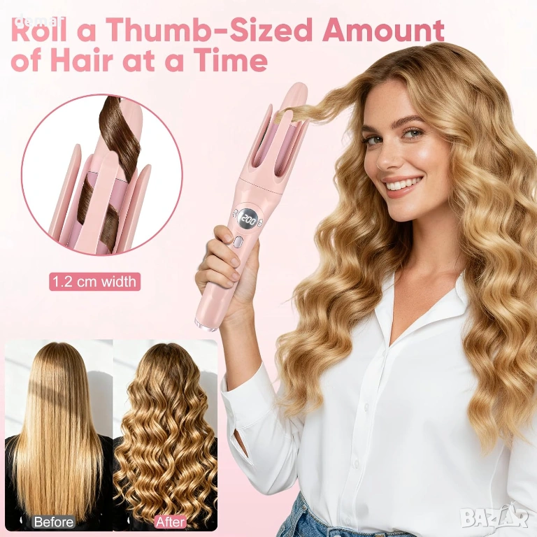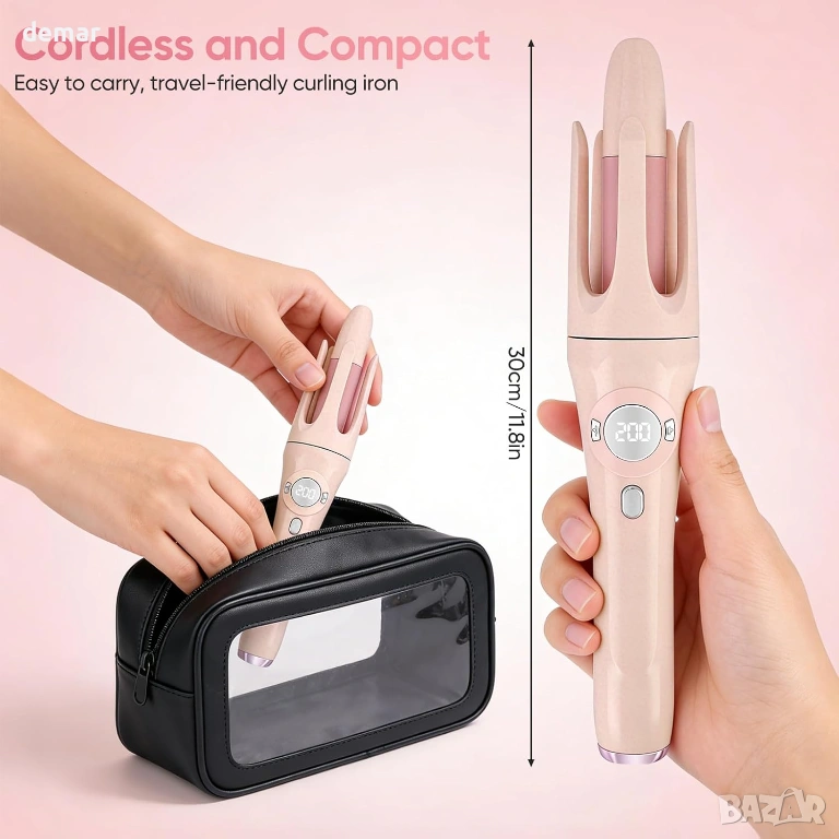 Автоматична безжична маша за коса с 4 температурни настройки, 32 мм, 4000mAh,сензор против заплитане