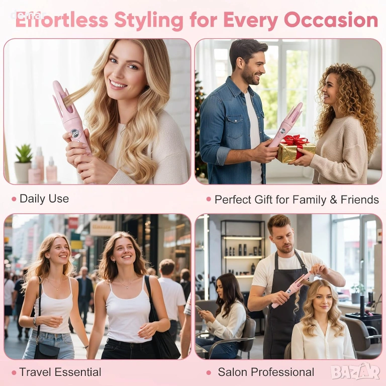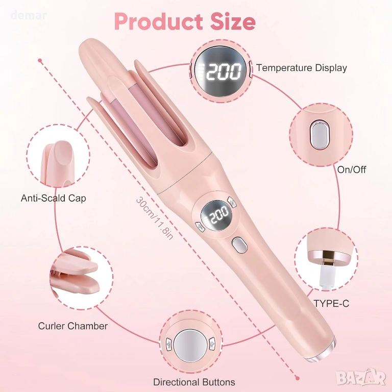 Тази безжична автоматична маша за коса предлага въртене с едно докосване за безпроблемни къдрици от 3,8 см, използвайки интелигентен мотор, който автоматично увива косата за лесно стилизиране. Лекият и преносим дизайн с вградена акумулаторна батерия я прави идеална за употреба навсякъде, а зареждането с Type-C порт поддържа външни батерии и зарядни за кола. С четири регулируеми температурни настройки, тя е подходяща за различни типове коса и помага за намаляване на увреждането. Керамично покритият цилиндър с технология за отрицателни йони минимизира накъдрянето и подобрява блясъка, осигурявайки гладки резултати, подобни на тези в салон. Двойните посоки на въртене позволяват гъвкаво стилизиране, от свободни вълни до дефинирани къдрици, докато бързото PTC нагряване достига оптимална температура за около 30 секунди, подкрепено от ясен LED дисплей за прецизен контрол.