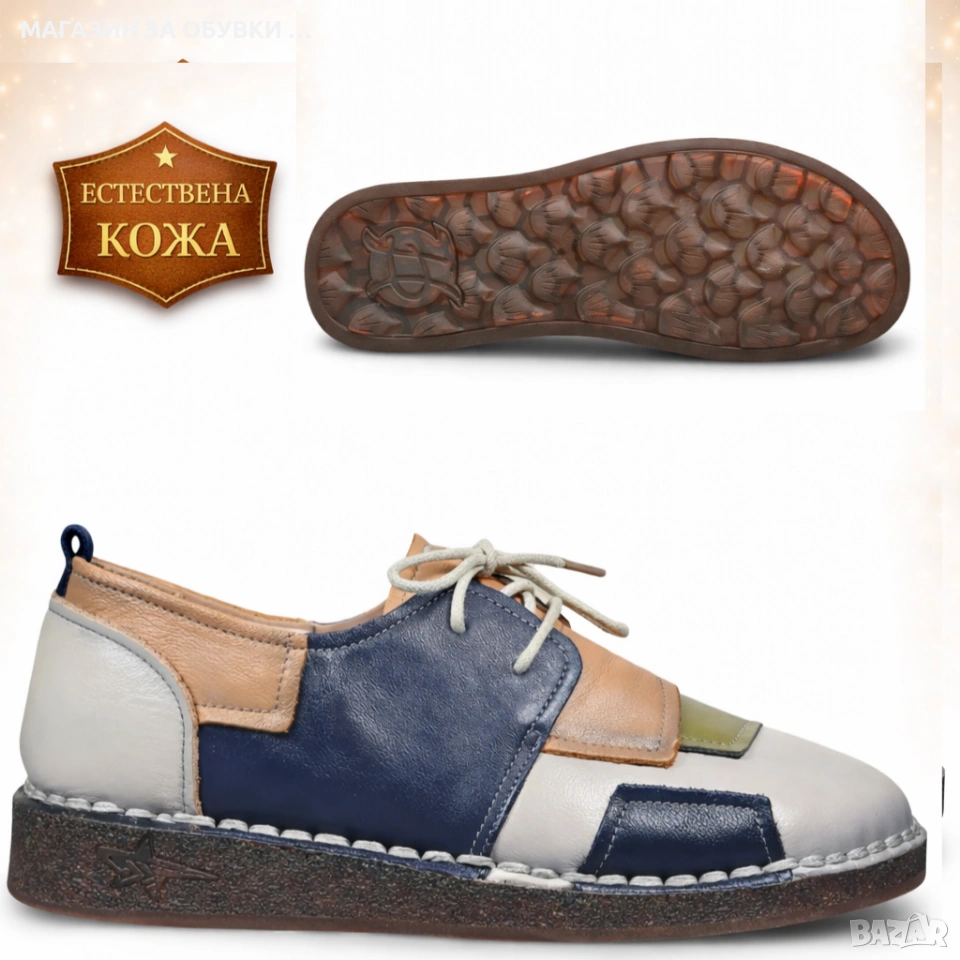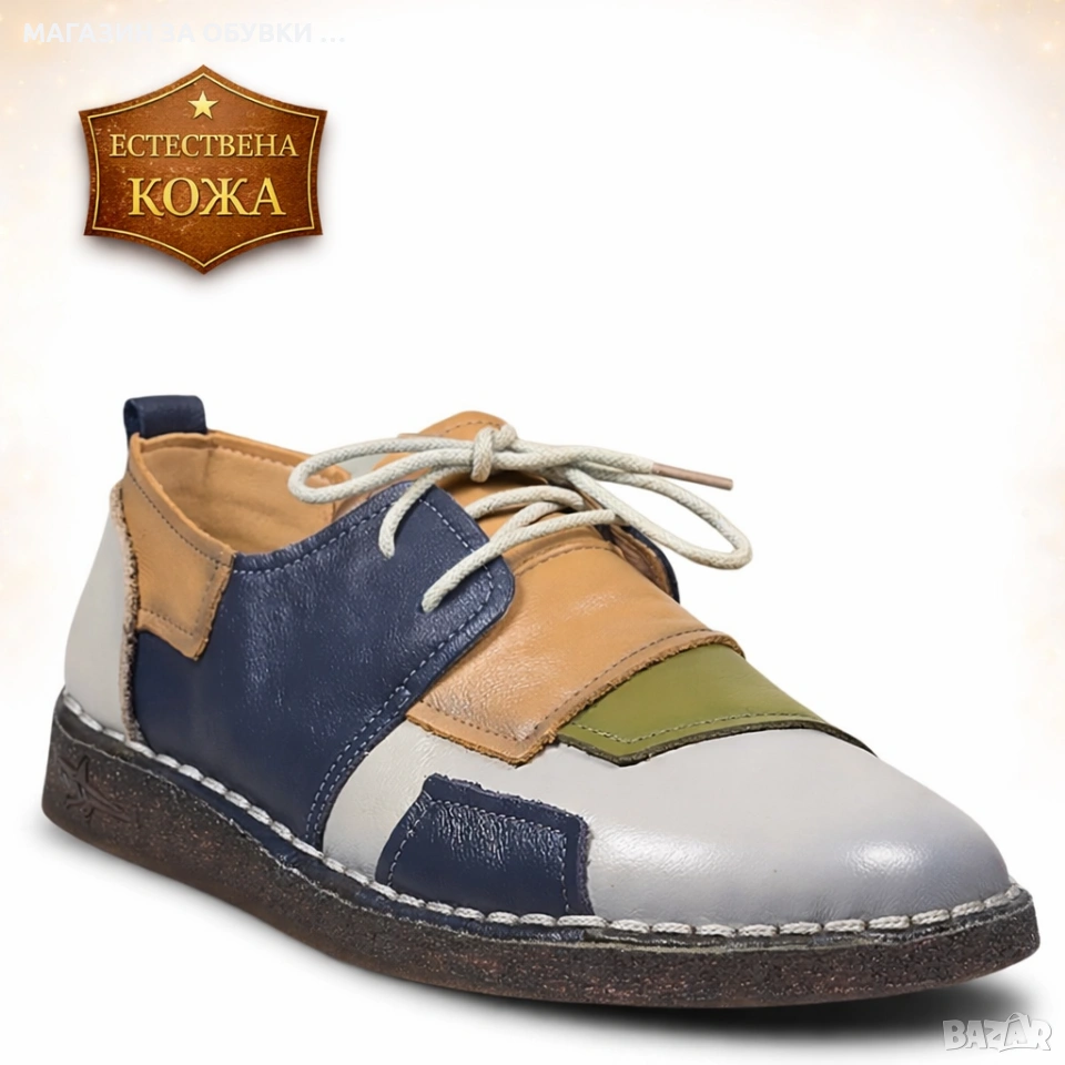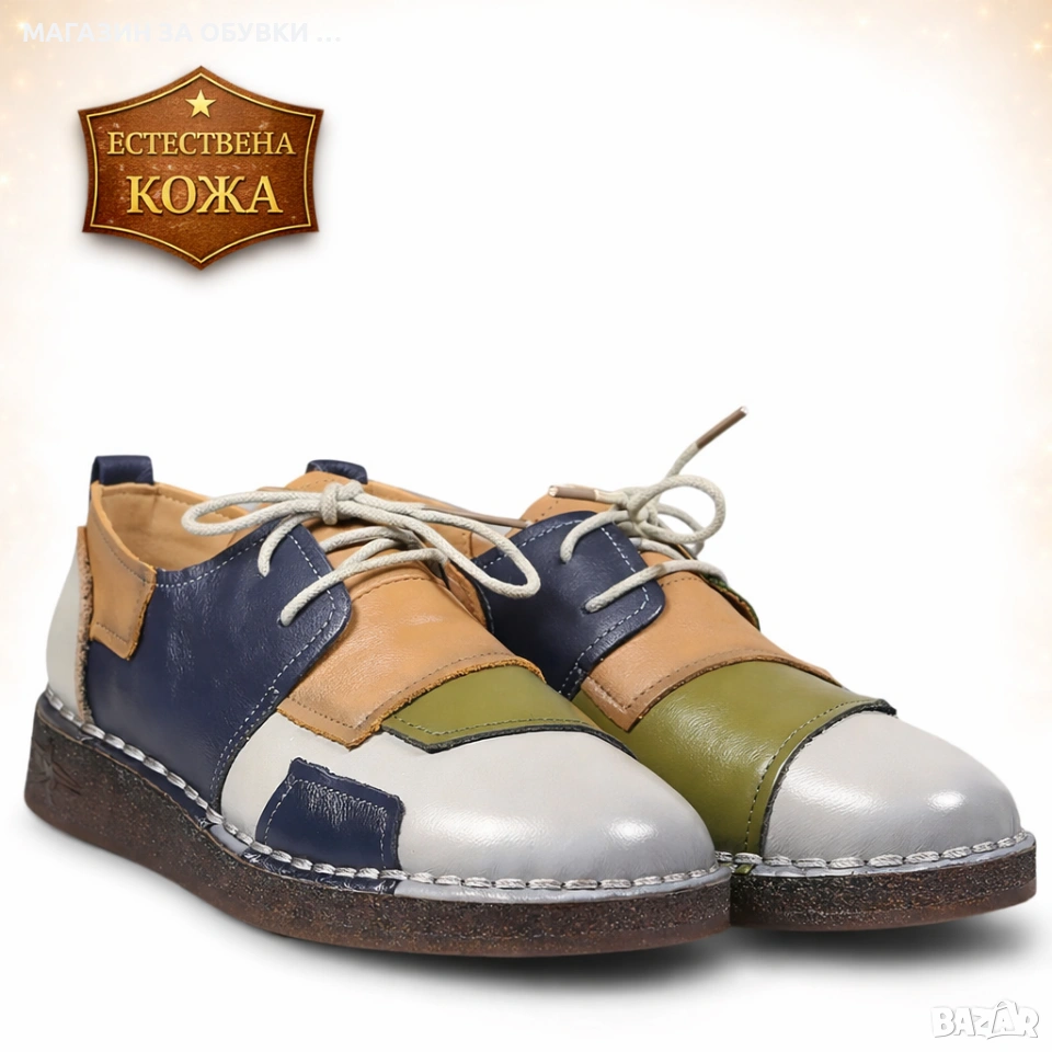 Дамски обувки от естествена кожа. Нестандартен и атрактивен дизайн! Изключително комфортни с мека силиконова подметка против хлъзгане! Дължина на стелка - № 36 - 23,5см/ 37 - 24см/ 38 - 24,5см/ 39 - 25см/ 40 - 25,5см/ 41 - 26см. Изпращаме с преглет и тест преди заплащане!