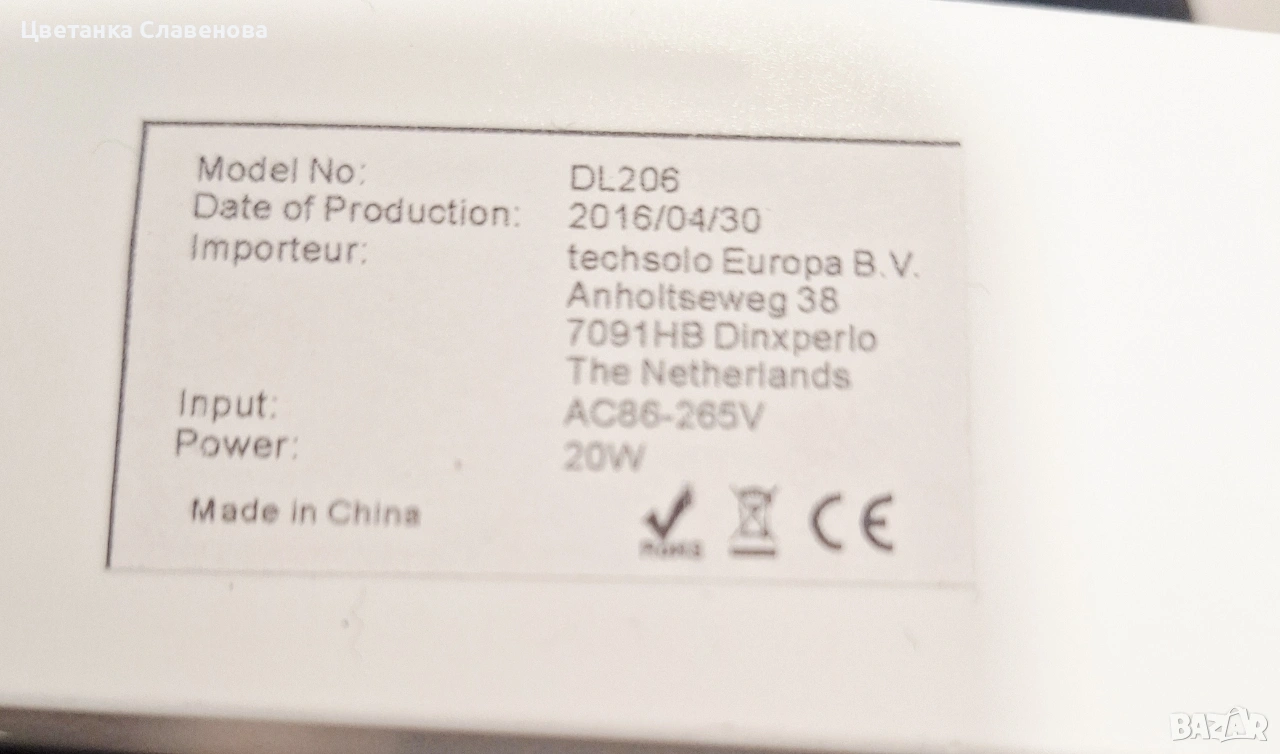 Вносител: techsolo Europa B.V. (Нидерландия)