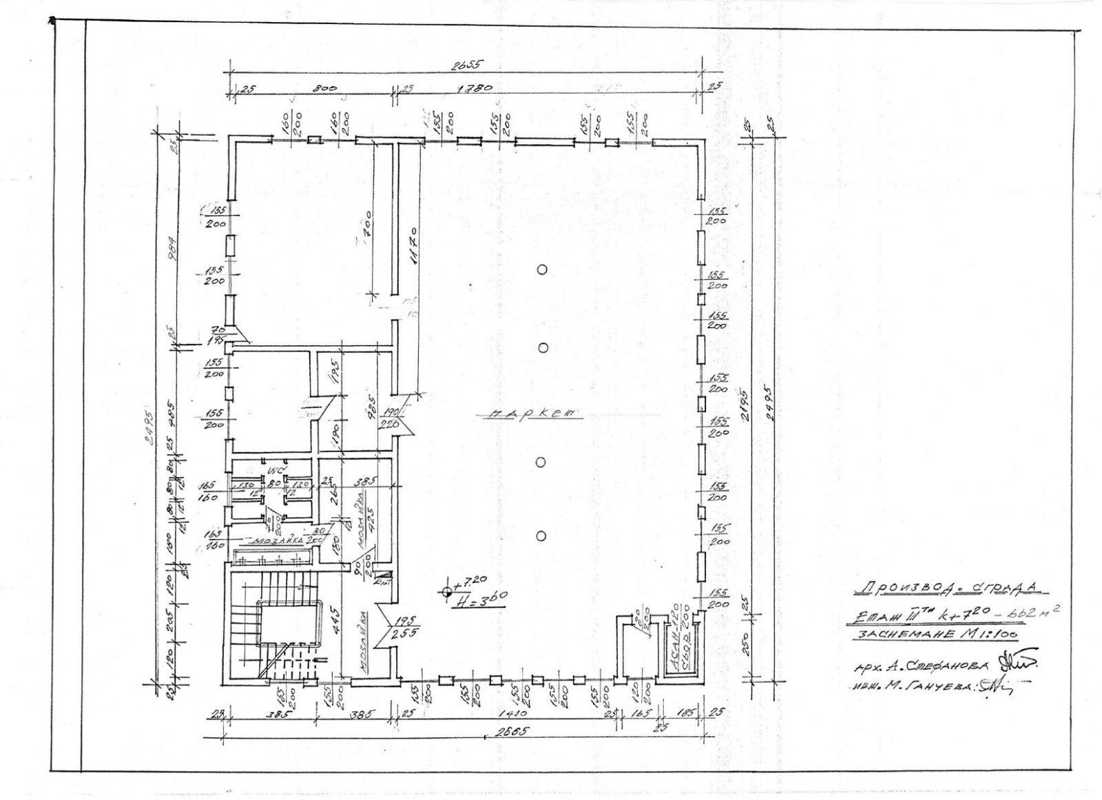 - триетажна производствена част с РЗП 3300 кв.м.;