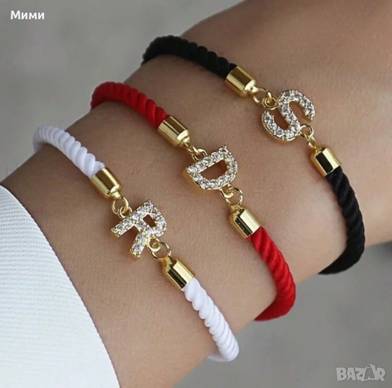 Налични гривни бяло червено и черно. Вие избирате буквата