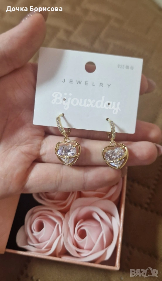 Златисти висящи обеци с халка, обсипана с камъни, и сърце с голям кристал в средата. Много ефектни! ✔ Медицинска стомана + 18К златно покритие 💦 Могат да се мокрят 🚫 НЕ потъмняват 📩 Пиши „ОБЕЦИ СЪРЦЕ“ за цена 📦 Еконт / Спиди