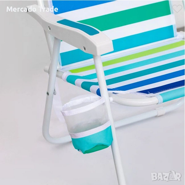 Сгъваем стол с подлакътници Mercado Trade, За къмпинг или плаж, Синьо-Зелен
