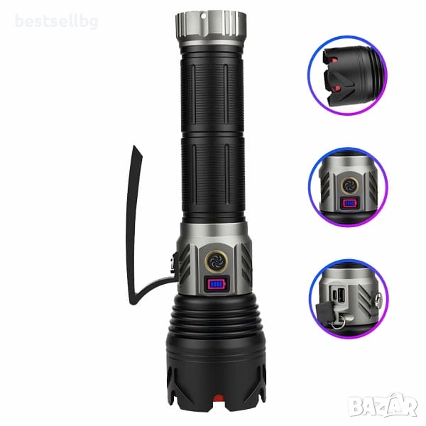 Мощен прожектор с лазерен диод 60W 2000м обхват, Zoom, Power Bank, USB-C COBA