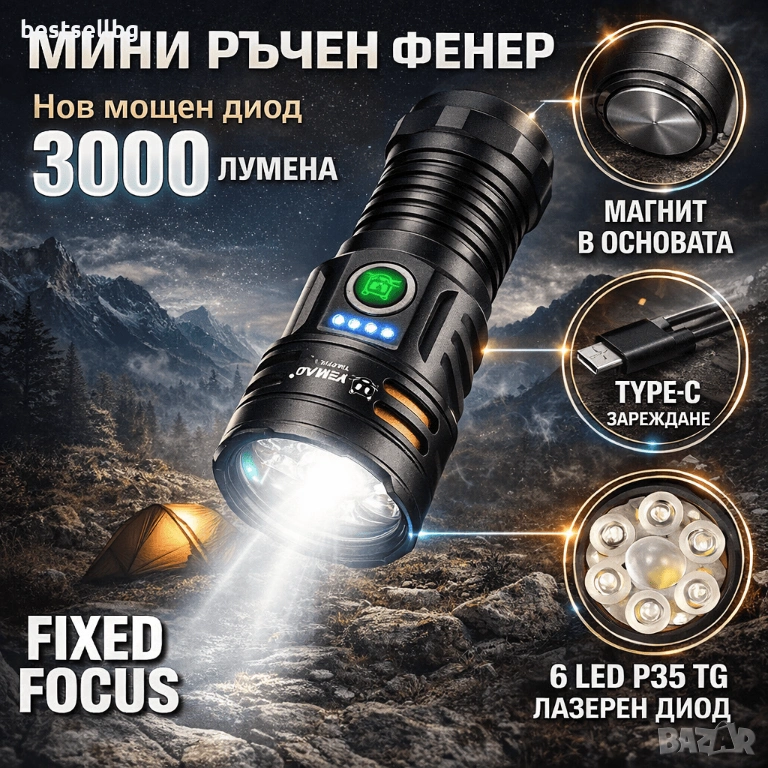 Търсиш Мощен ръчен фенер P35, който да комбинира професионална яркост, дълъг обхват и надеждност? Този модел е идеален за лов, охрана, къмпинг или всякакви ситуации, където качествената светлина е критична.