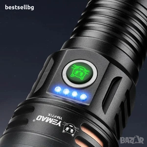 Мощен ръчен фенер P35 YEMAO 3000 лумена, 500м обхват, USB-C, тактически, 7 режима