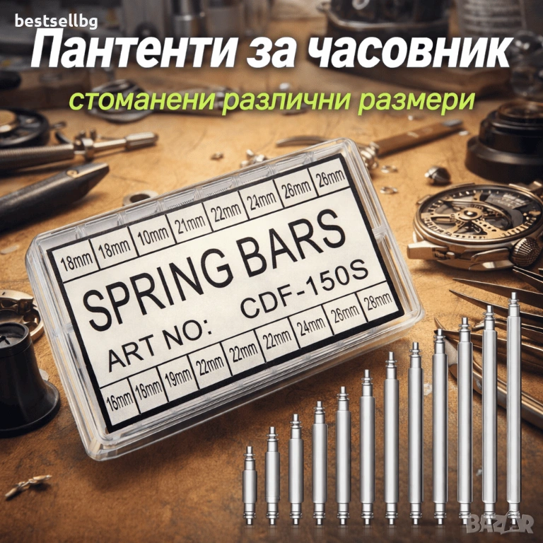 Съдържа всички популярни размери от 18mm до 28mm, което прави този Комплект патенти универсален за мъжки и дамски часовници.