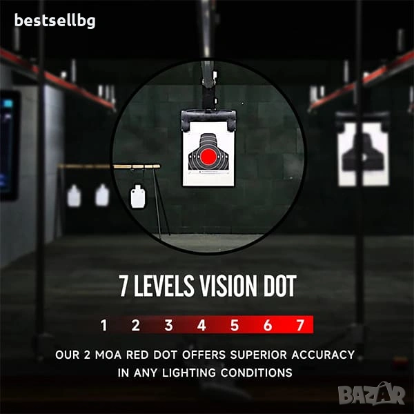 С 2 MOA точка и 1x увеличение, този малък бързомер позволява изключително бързо насочване към целта с максимална точност.