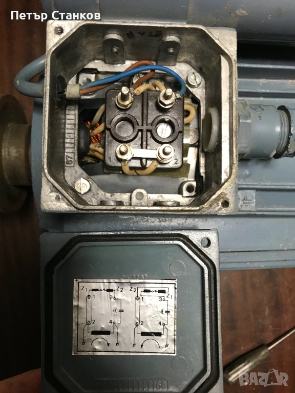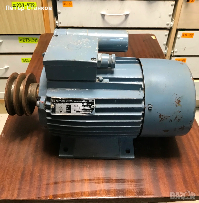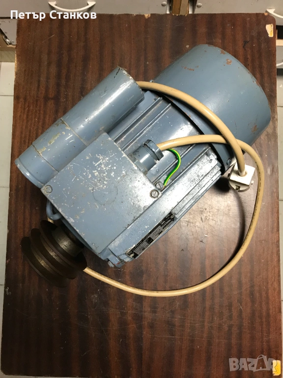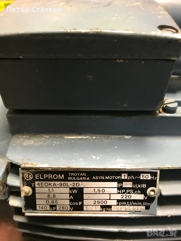 Асинхронен с кафезен ротор с пусков кондензатор и собствена външна вентилация, 1.1кВт, 8.8А ,2900 оборота.Тежи 19кг ,цената на доставка от офис на Спиди е не повече от 10 е.Може да се види в работните дни 11-18ч. Бургас центъра.Свързал съм кабел и може да се пробва.