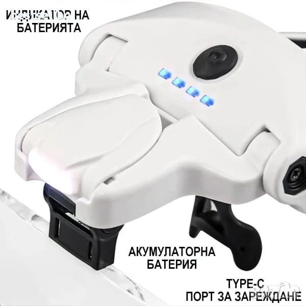 Лупа за глава с LED осветление 6x, USB-C, 5 лещи, професионална увеличителна лупа