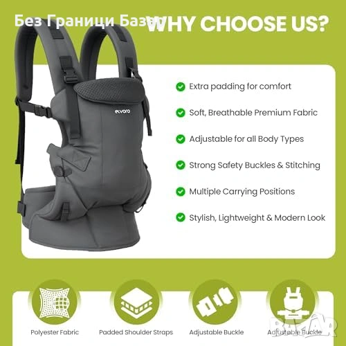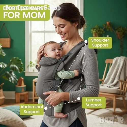 Осигурява ергономична опора и комфорт както за детето, така и за родителя