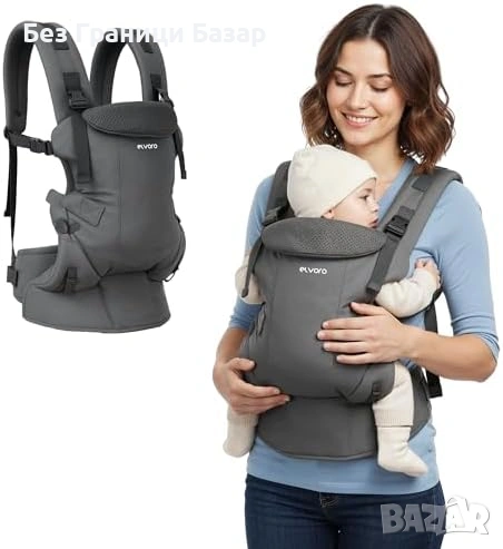 Нова Бебешка раница за носене регулируема с колан и джобове сиво кенгуру за бебе и малко дете