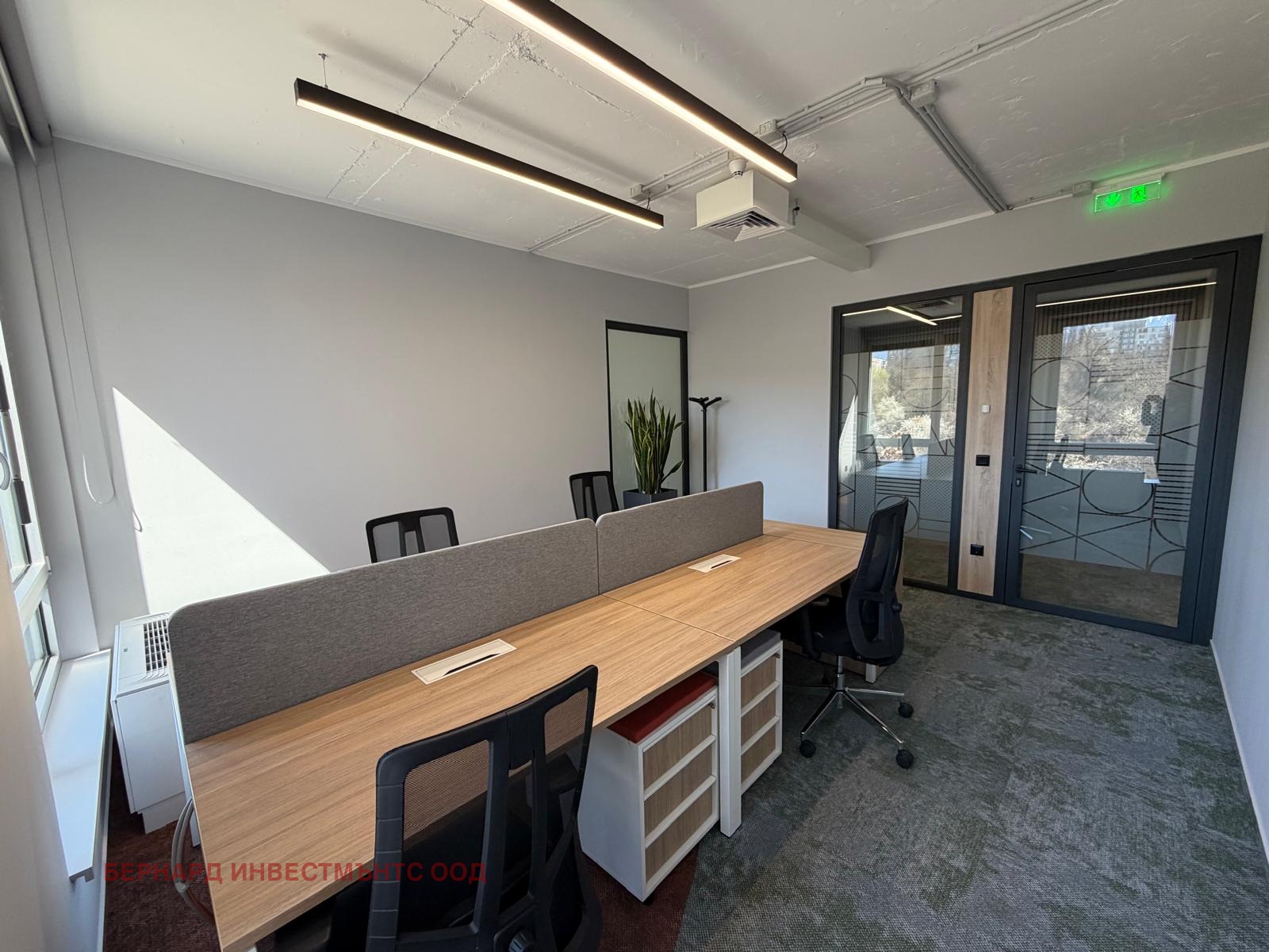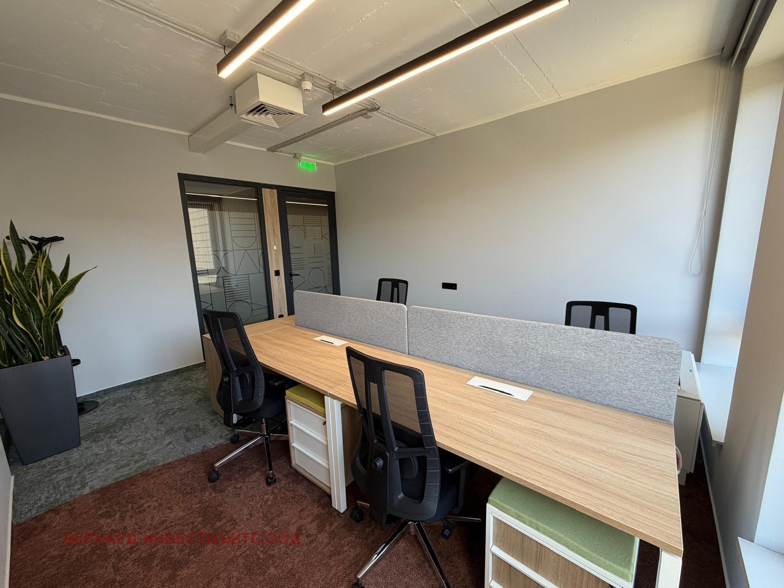 Офисът е разположен на висок партерен етаж и поради денивелацията на сградата, се усеща като поне втори. Състои се от 4 напълно обзаведени работни места в офис с контрол на достъп, част от WorkHub Serviced офиси.