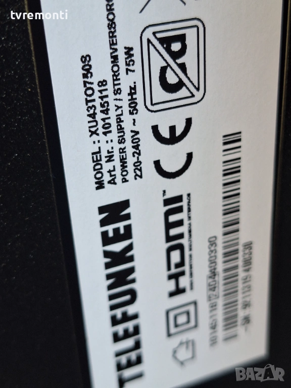 TCon BOARD ,HV430QUBF70,44-9771766E,47-6021477 за 43-инчов телевизор Telefunken Модел XU43TO750S, с