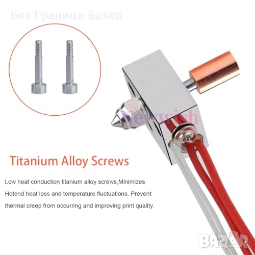 Bi-metal heatbreak с титаниева и медна секция за по-добро охлаждане и ограничен топлинен пренос