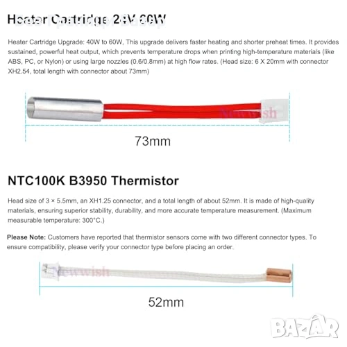 Подобрен 60W heater cartridge за по-силно и постоянно нагряване