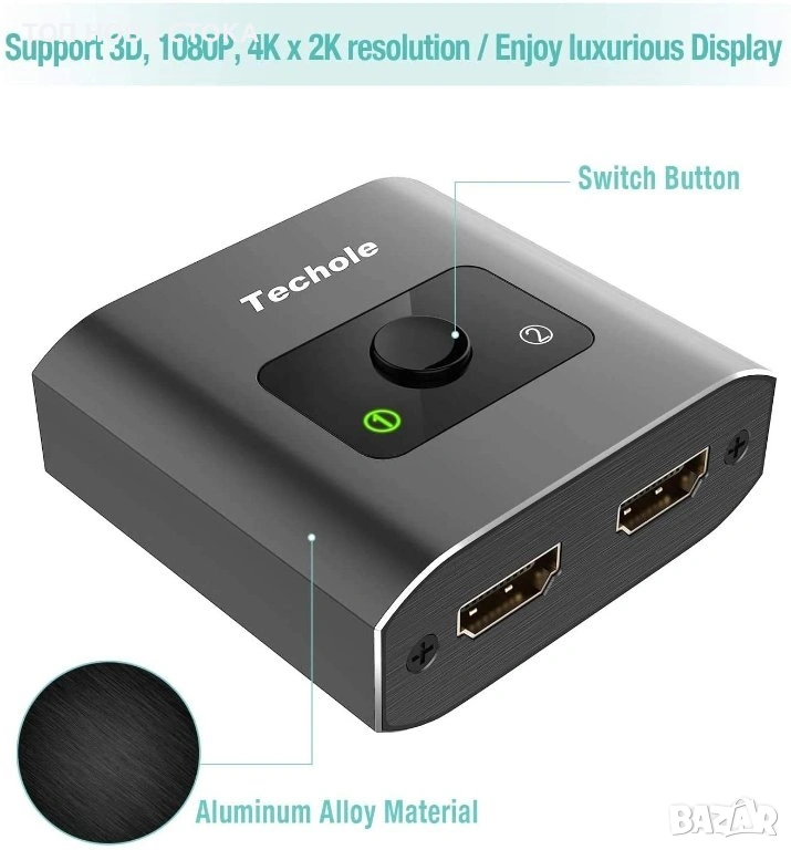 Techole 4K HDMI сплитер-алуминиев двупосочен, 2 x 1/1 x 2, 4K 3D 1080P за Xbox PS, РС, HDTV