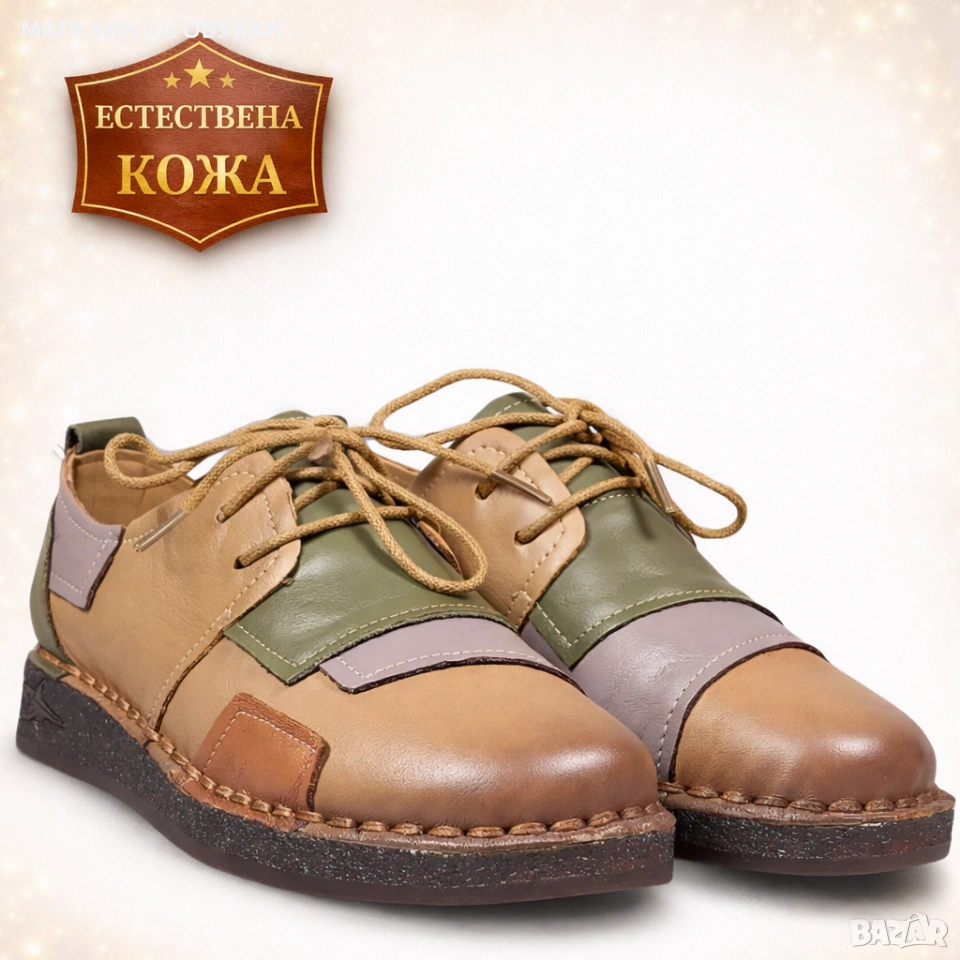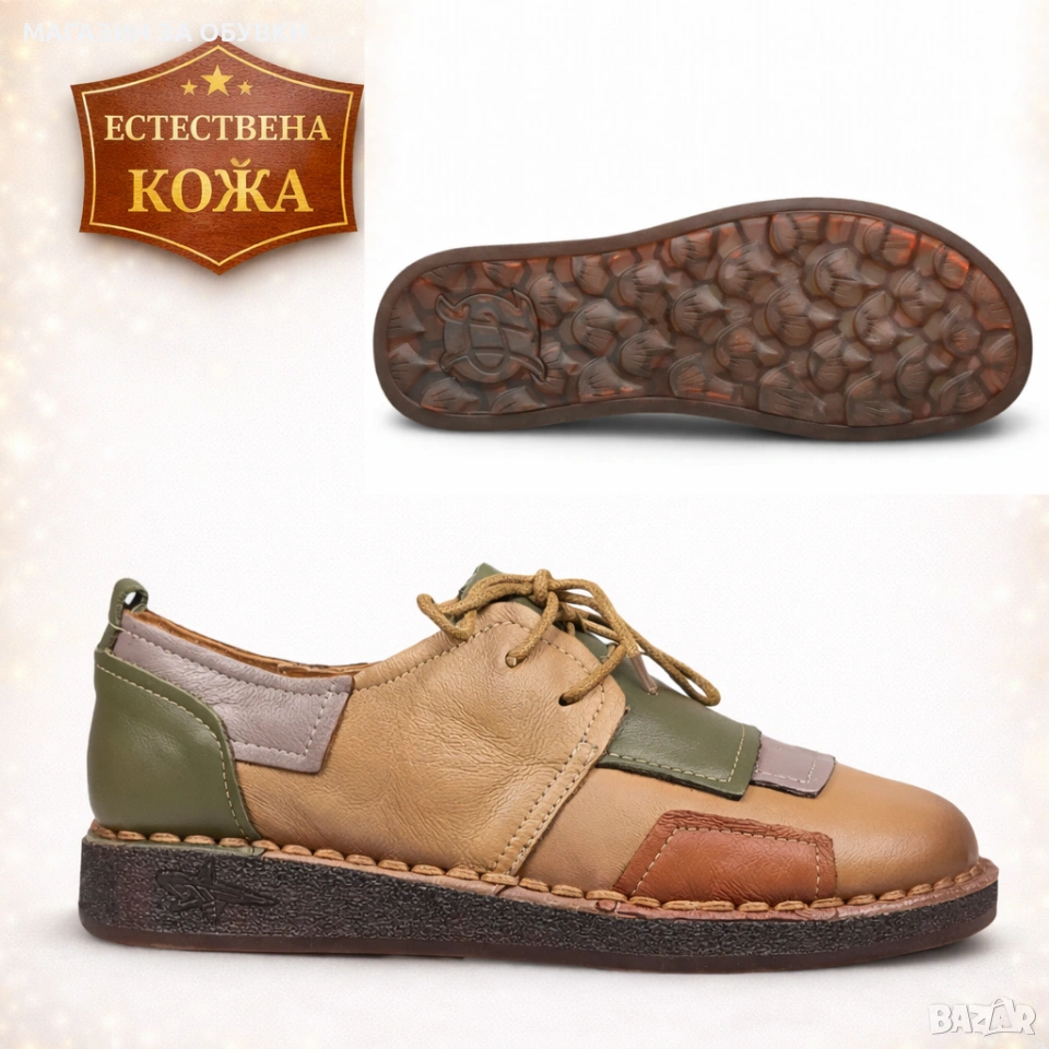 Дамски обувки от естествена кожа. Нестандартен и атрактивен дизайн! Изключително комфортни с мека силиконова подметка против хлъзгане! Дължина на стелка - № 36 - 23,5см/ 37 - 24см/ 38 - 24,5см/ 39 - 25см/ 40 - 25,5см/ 41 - 26см. Изпращаме с преглет и тест преди заплащане!