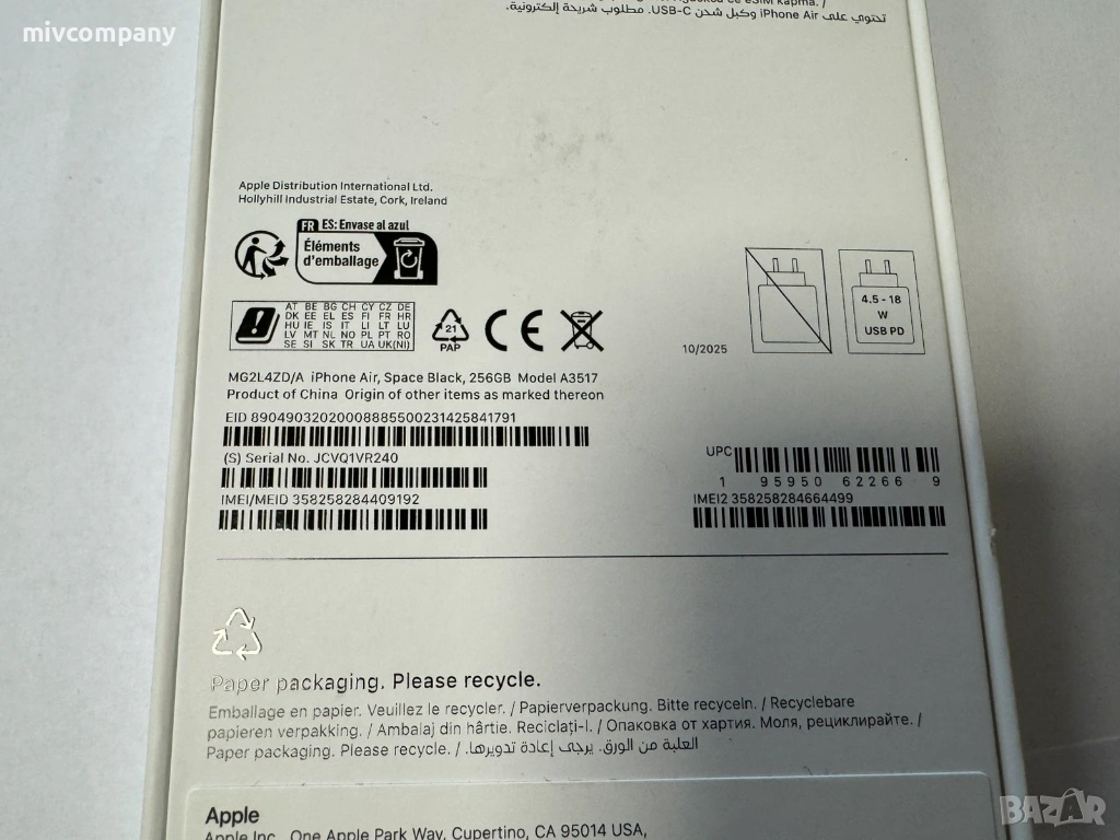 Apple iPhone Air 256GB Нов с гаранция!!!, снимка 1 - Apple iPhone - 54111566 Apple iPhone Air 256GB Нов с гаранция!!!, снимка 2 - Apple iPhone - 54111566 Apple iPhone Air 256GB Нов с гаранция!!!, снимка 3 - Apple iPhone - 54111566 Apple iPhone Air 256GB Нов с гаранция!!!, снимка 4 - Apple iPhone - 54111566 Apple iPhone Air 256GB Нов с гаранция!!!, снимка 5 - Apple iPhone - 54111566 1/5