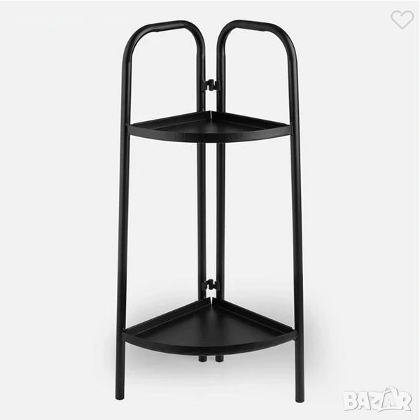 Практичен метален цветарник за ъгъл в черен цвят с размери 66x27 см. С компактна конструкция и няколко нива, позволява подреждане на саксии с растения, като спестява място и създава стилен акцент в интериора.