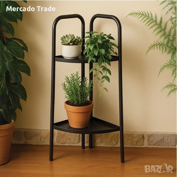 Декоративен ъглов цветарник Mercado Trade, Метал, Черен
