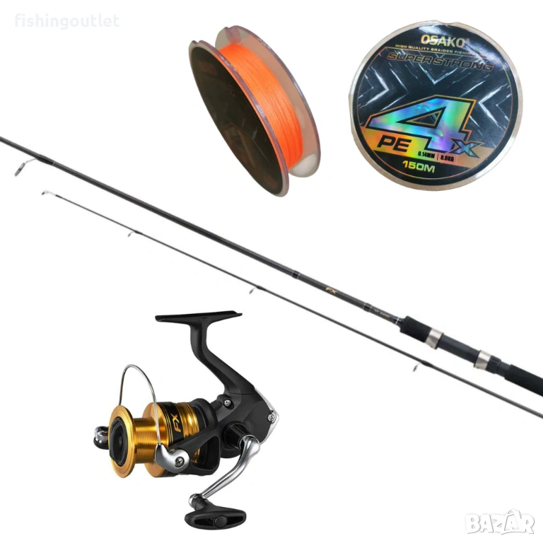 Към въдицата и макарата полъавате и плетено влакно 150мт OsakoX4 дебелина 0.14мм и тест тегло 8.0кг