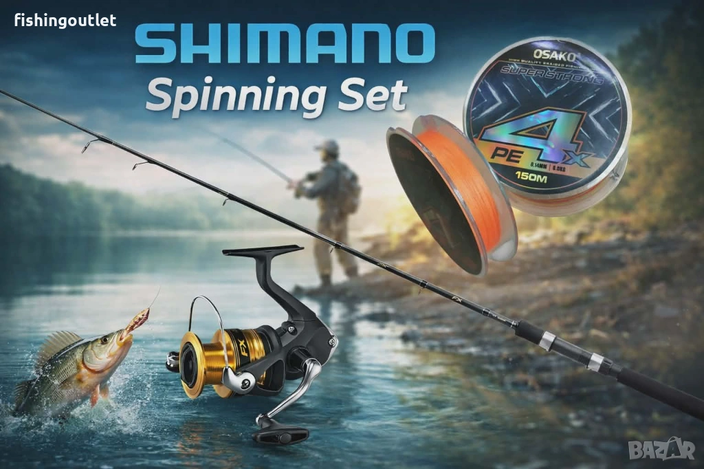 Спининг комплект Shimano . Въдица 2.40м 10-30гр акция, макара 2500 с 3 лагера и плетено влакно 150мт