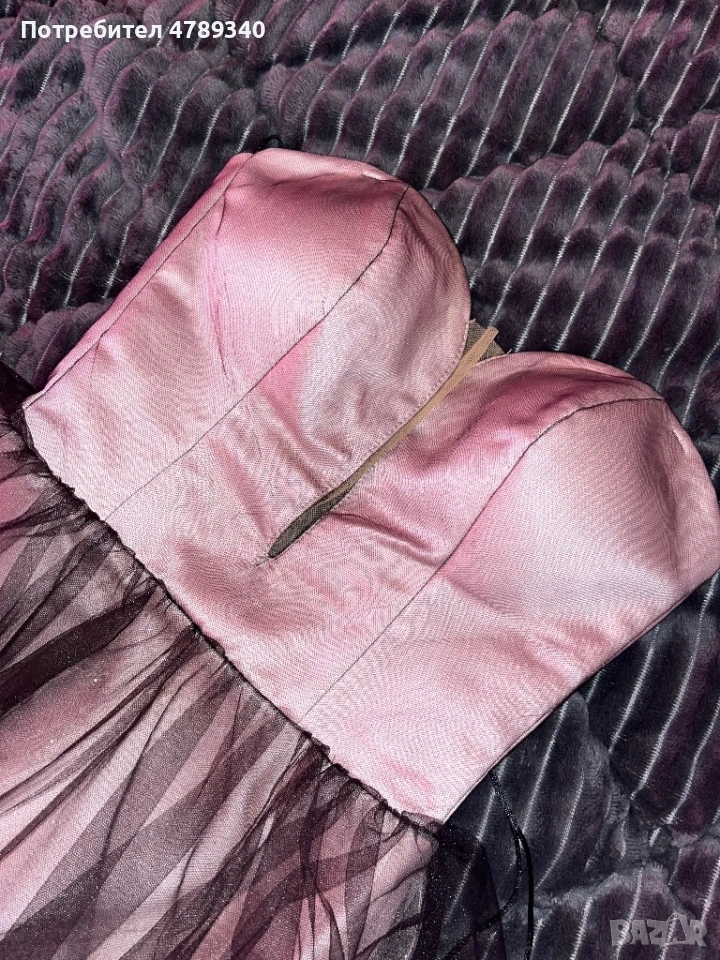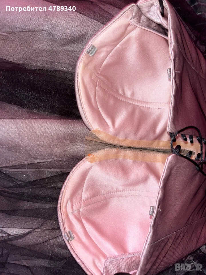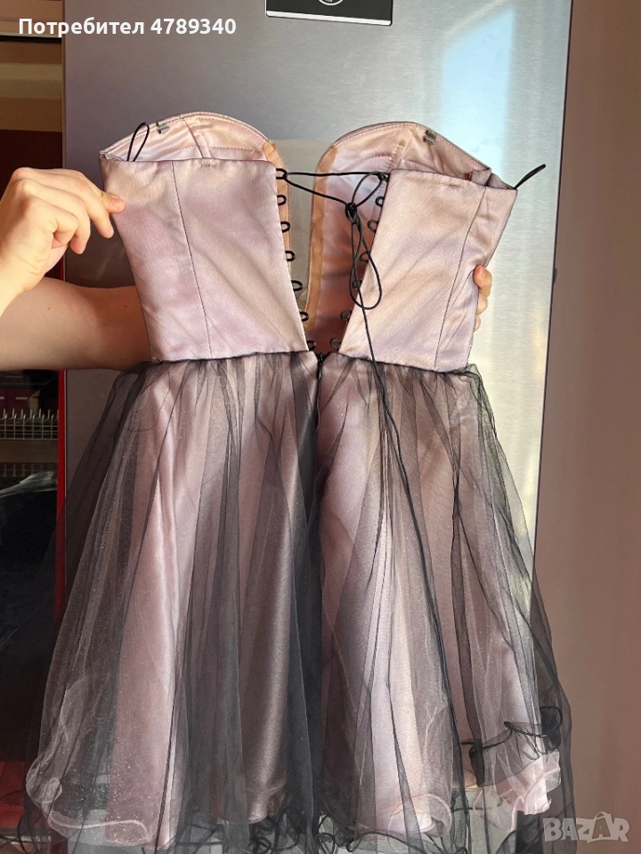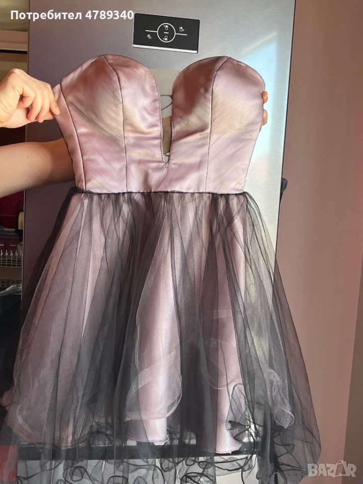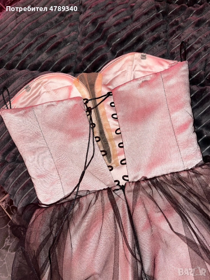 Официална къса рокля тип корсет с розов сатен и черен тюл
