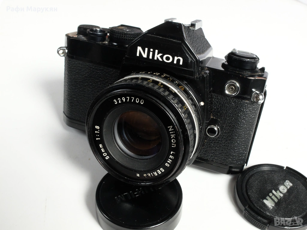 ОБЕКТИВ: класическият Никон 1,8/50 мм серия Е. Изключително остър, голяма разделителна способност, 6 лещи/4 групи, 7 ламели, 8,9 боке, 9,4 острота, филтри и капачки М-52, най-близо снима от 60 см.