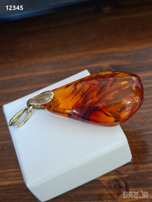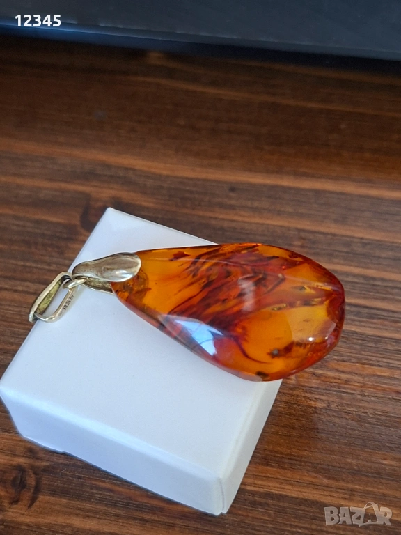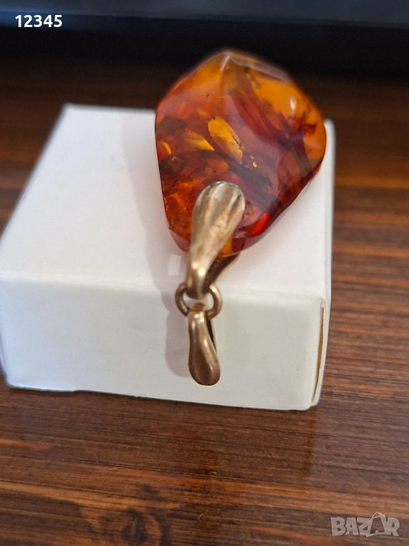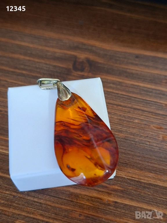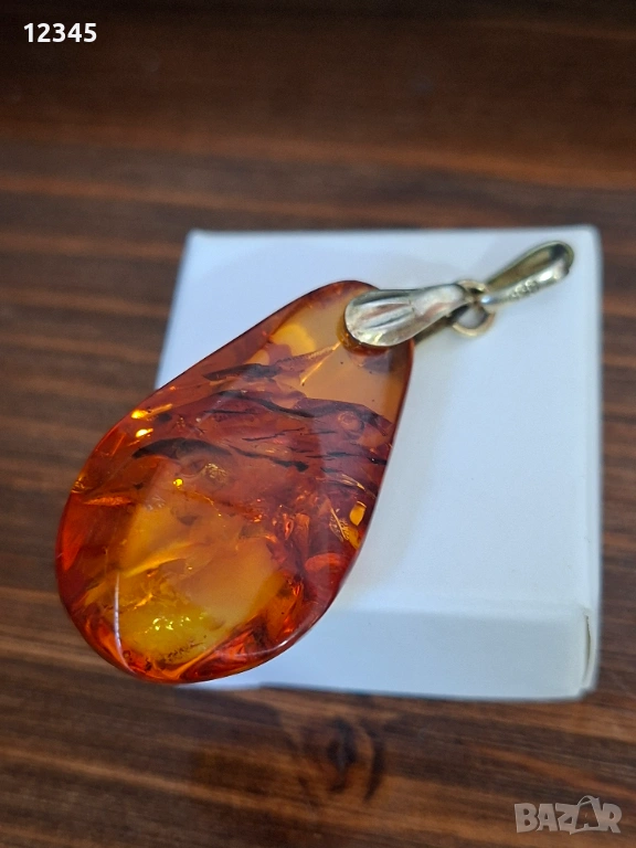 Стар сребърен медальон/висулка с кехлибар → Обява 54111931