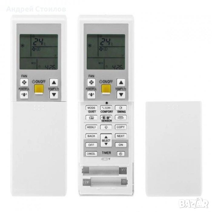 • Функции: Включва бутони за режим на работа, сила на вентилатора, настройки за температура, люлеене (swing), и таймер.
