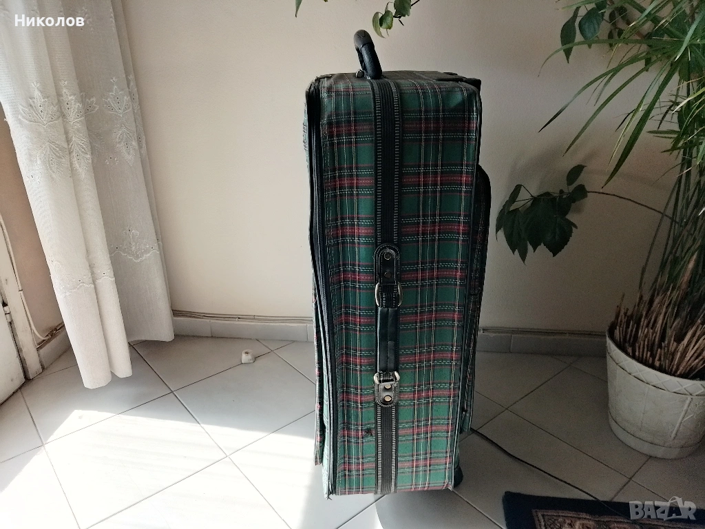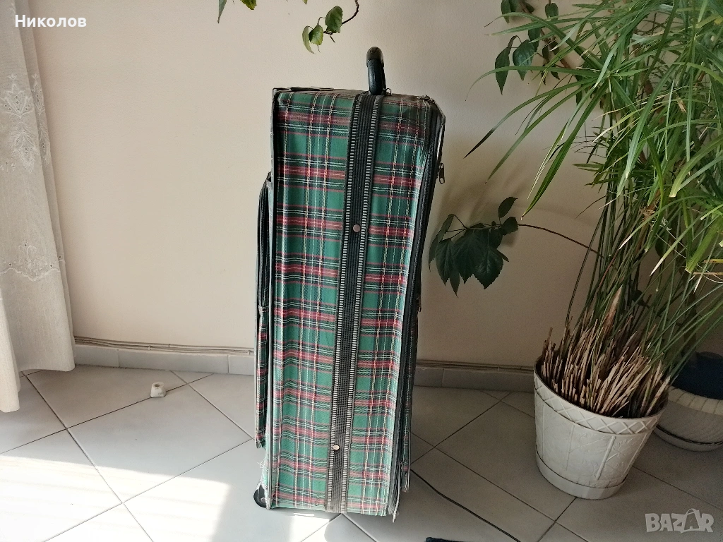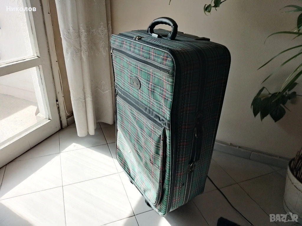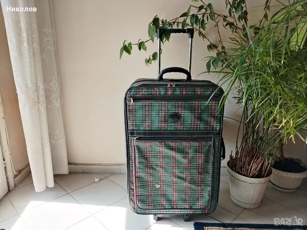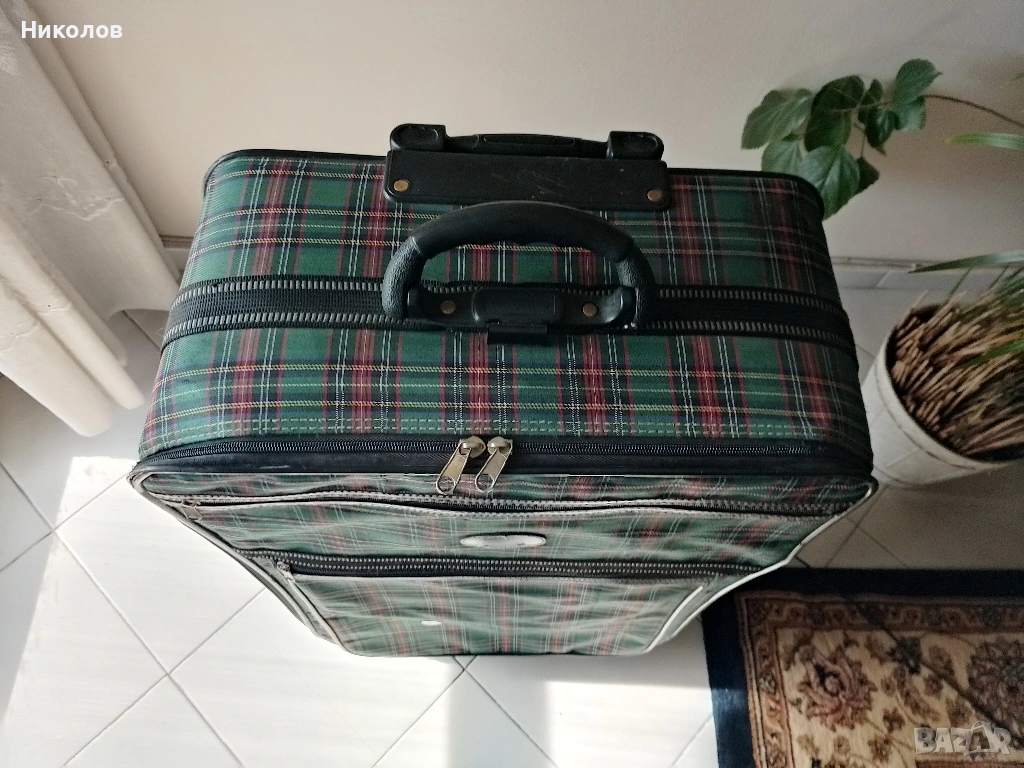 Куфар Голям със 2бр двойно усилени колелца, във добро и здраво с-ние на всичко, ползван 4 пъти със автобус! "75/50/25см" "5кг" "15€" По Еконт със -10% за доставка! За София "Възможна" доставка до адрес!