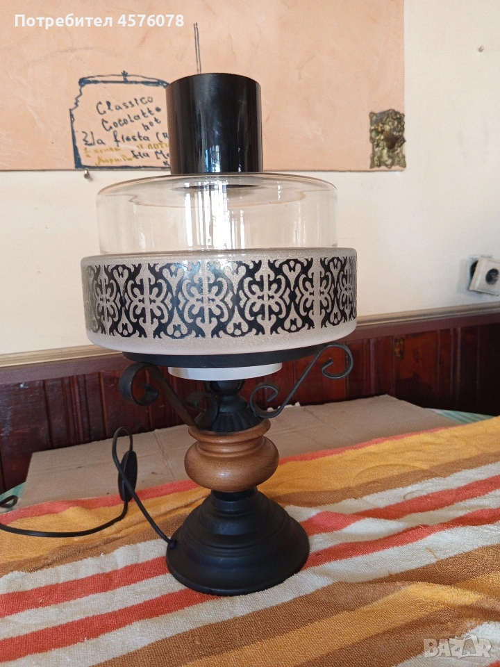 нощна лампа с масивен стъклен абажур → Обява 54112284
