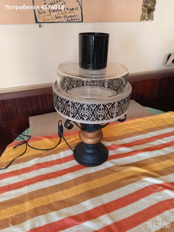 нощна лампа с масивен стъклен абажур, снимка 1 - Антикварни и старинни предмети - 54112284 нощна лампа с масивен стъклен абажур, снимка 2 - Антикварни и старинни предмети - 54112284 нощна лампа с масивен стъклен абажур, снимка 3 - Антикварни и старинни предмети - 54112284 нощна лампа с масивен стъклен абажур, снимка 4 - Антикварни и старинни предмети - 54112284 1/4