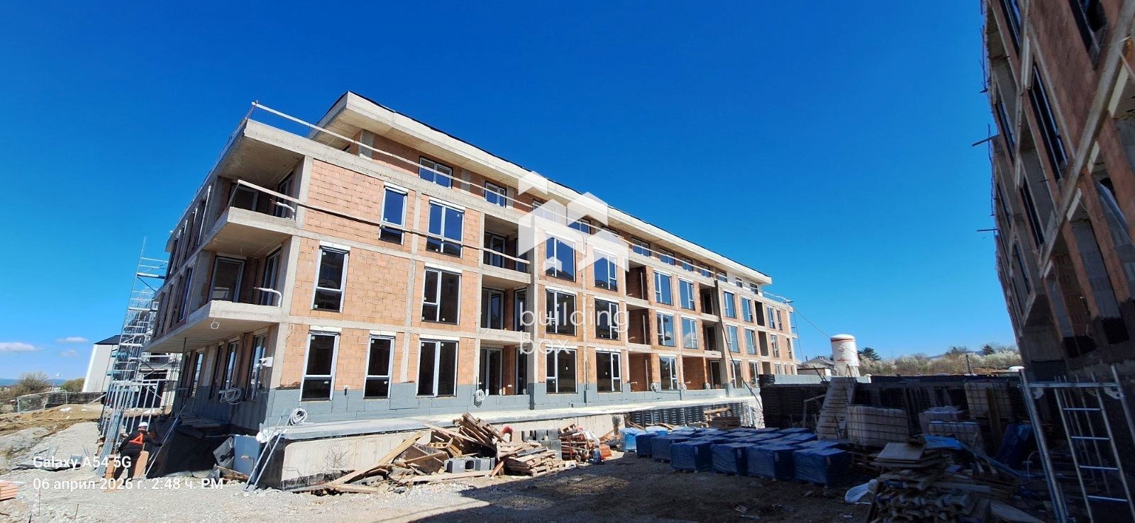 Жилището е разположено на 3-ти етаж от общо 4 в нова, модерна тухлена сграда с Акт 14 и удостоверение по чл. 181 - част от комплекс с отлично поддържани общи части и контролиран достъп.