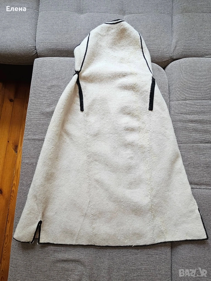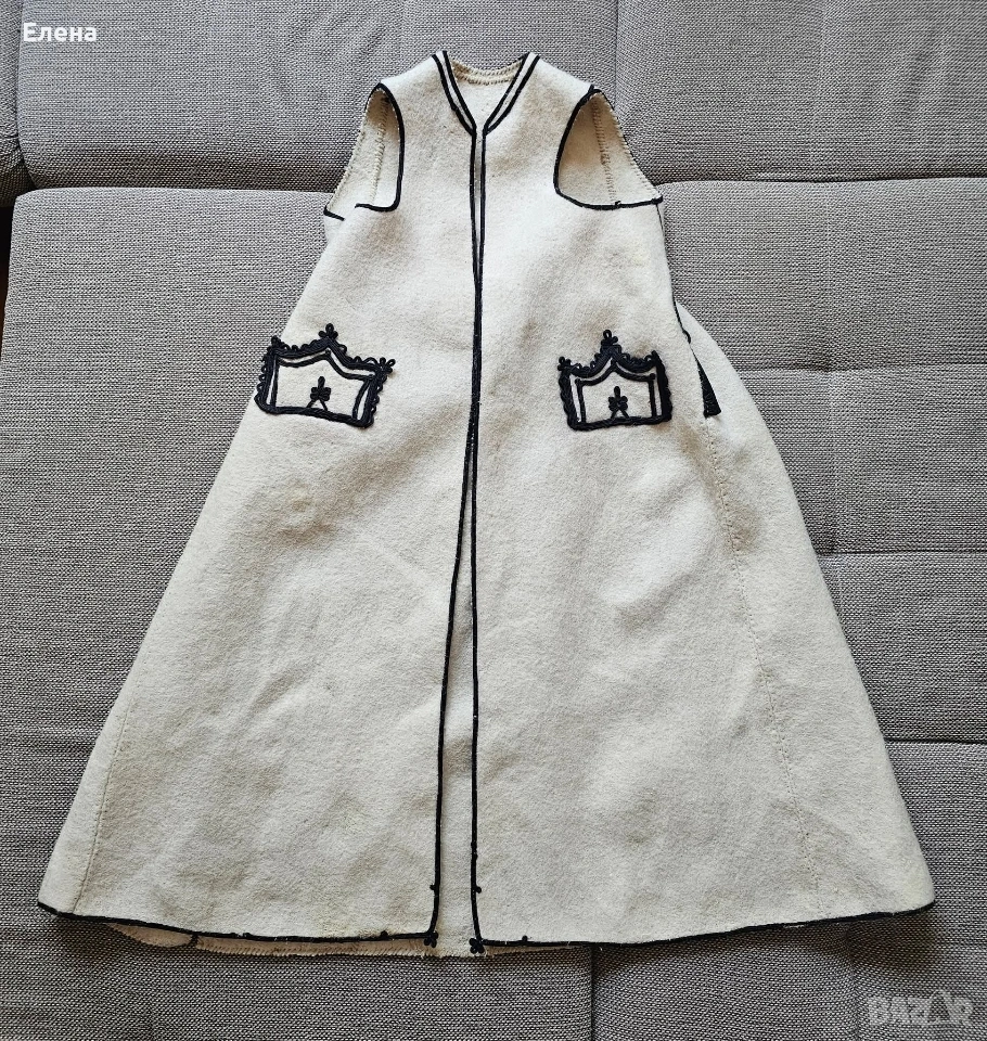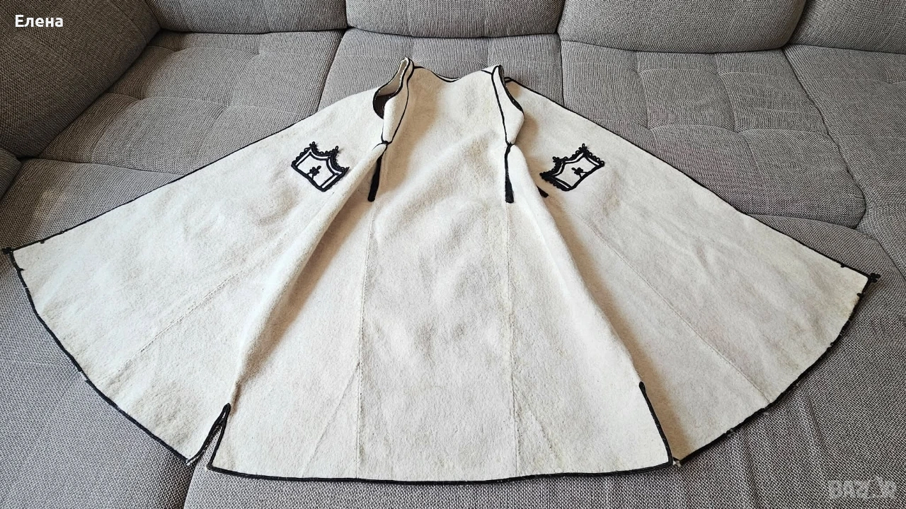 Цена 280 € Дължина 107 см Обиколка на плата при подмишниците е 94 см, като клашникът се носи отворен.