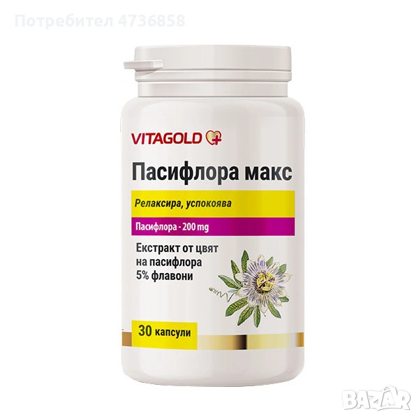 Всяка капсула съдържа стандартизиран екстракт от цвят на пасифлора – 200 mg (5% флавони)