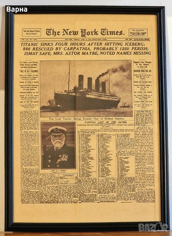 Histori Poster Titanic - Постер "Титаник" - Поставена рамка, стъкло и гръб. Има кукички за окачване.