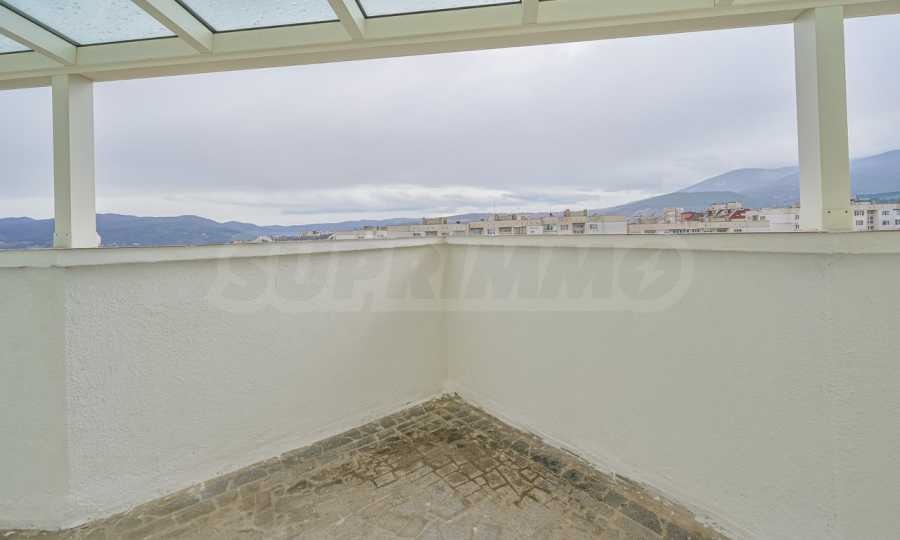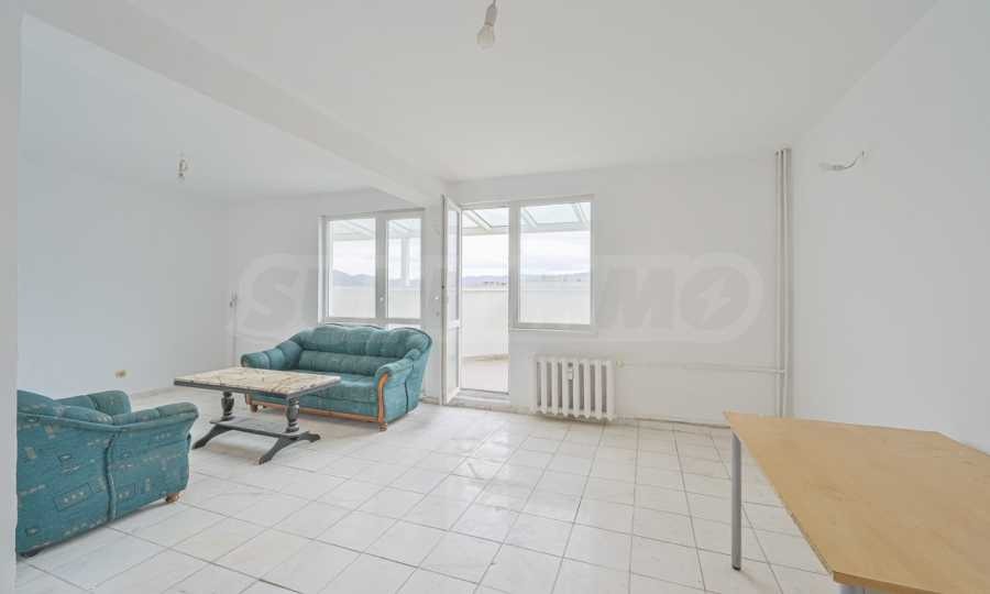 Жилището е ситуирано на последните два етажа в монолитна сграда с отлично поддържани общи части, два асансьора и централно отопление чрез ТЕЦ. Отличава се с функционално разпределение, просторни помещения и изобилие от естествена светлина през целия ден.