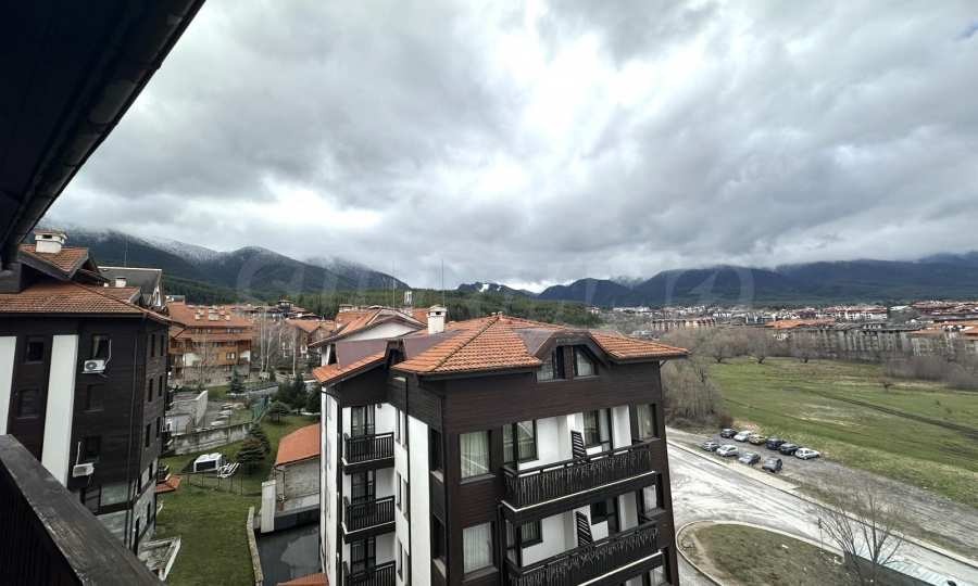 Представяме южно студио с панорамна гледка към планината в хотелски комплекс, само на няколко минути от кабинковия лифт и ски пистите на Банско.