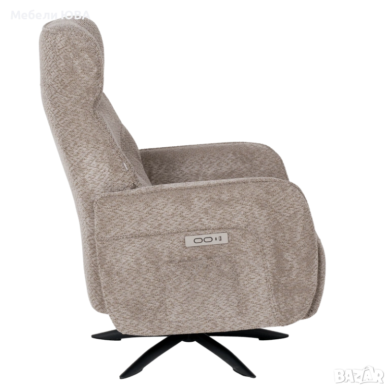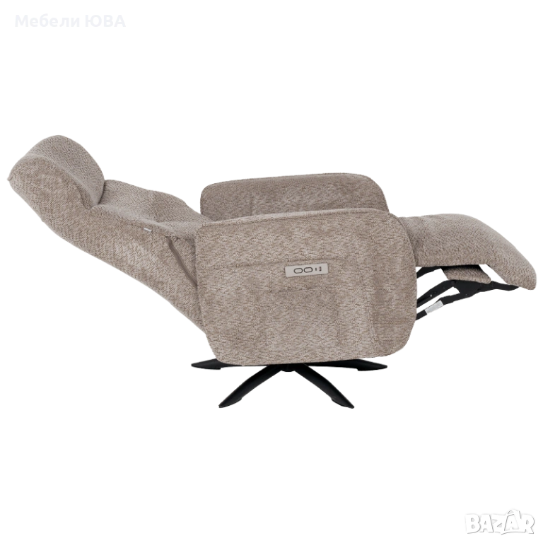 Моделът се отличава с елегантна тапицерия от мека текстилна материя в неутрален кафяв цвят, която лесно се вписва в различен тип интериор. Креслото е снабдено с многофункционален електрически механизъм за разтягане, позволяващ плавно регулиране на позицията на облегалката и поставката за крака