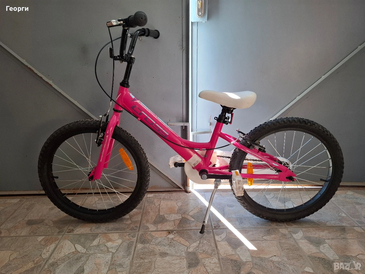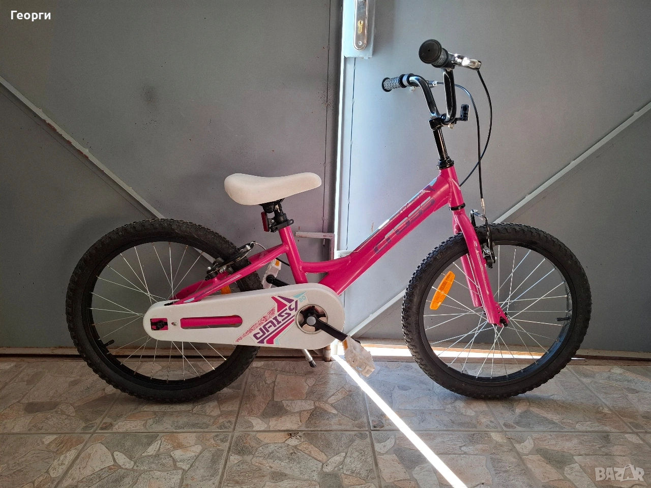 Продавам алуминиев детски момичешки велосипед Cross Daisy-20 цола с предна и задна спирачка,чисто нова стойка за подпиране,бърз монтаж на седалката.Изключително запазено с минимални следи от употреба,много леко и маневрено колело,здраво и качествено на доказана марка!При желание към него и оригинални помощни колела!