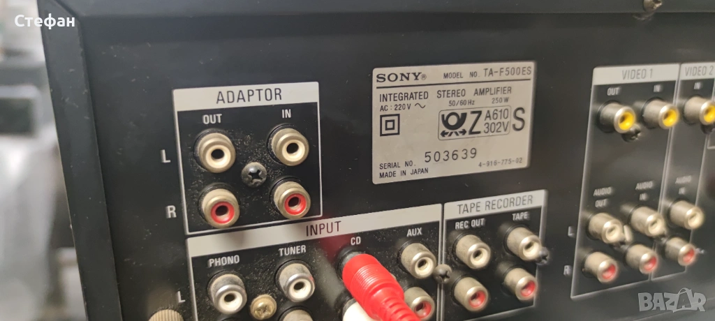 Входове: Phono, CD, Tape1, Tape2, адаптер, директен вход, тунер