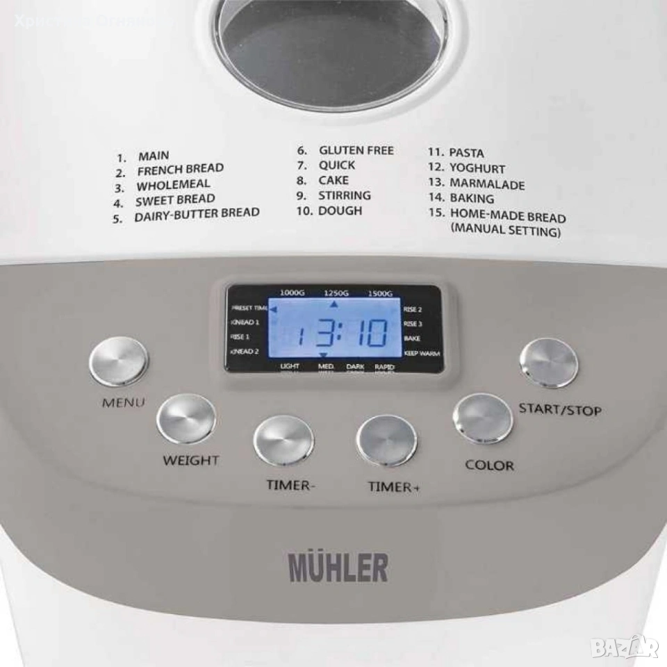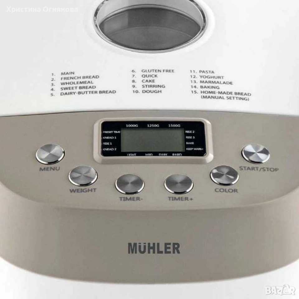 Хлебопекарна MBM-1509, бял-сив, две бъркалки