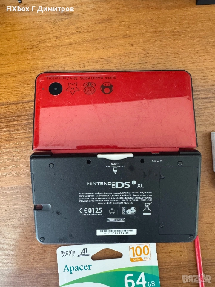 Продавам Nintendo DSi XL Mario Edition с външни забележки но перфектна технически . Конзолата е основно почистена и след профилактика , всичко по нея работи нормално .
